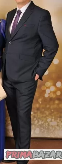 Velmi pěkný, kvalitní, dobře zpracovaný, tmavěmodrý oblek s jemnou strukturou. Oblek dobře padne, je lehce projmutý, nový, jednou nošený, bez poškození a znečištění. Vhodný pro postavu o výšce 182-188 normální postavy, obvod hrudníku cca 112 cm, pas 100 cm. PC 5.490,- Kč