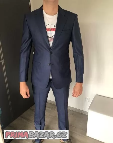 Tmavě modrý oblek Pietro Filipi. Málo nošený. Součástí náhradní kalhoty. Koupeno na postavu 189 cm, váha +- 80kg. PC 17.000,-