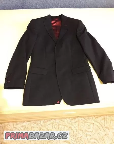 Prodám 1x použitý oblek ( maturita ), výborný stav, bez poškození, pro štíhlou postavu, pro výšku cca 173 - 175 cm, krásně ušitý na míru ( fa LIPTEX ), hezká podšívka, uvnitř 5 různě velkých kapsiček, obvod pasu kalhot 74 cm, délka nohavic od pasu dolů 104 cm, od rozkroku dolů 79 cm, šířka ramen 42 cm, rukáv od ramene dolů 60 cm
