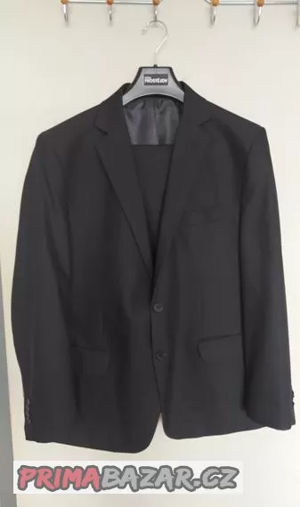 Prodám oblek na postavu 170 cm, kalhoty v pase 102 cm. Materiál 30℅ vlna, 66℅ polyester, 2℅ elastan.