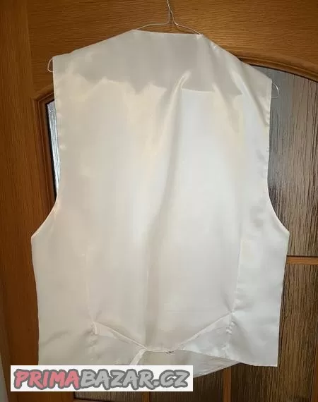 Prodám pánskou vestu BANDI Champagne, velikost 58. Jediná vada - upadl knoflik. Dá se sehnat nový. Prodám včetně kravaty, kapesníčku a originál obalu. Osobní odběr Praha 5