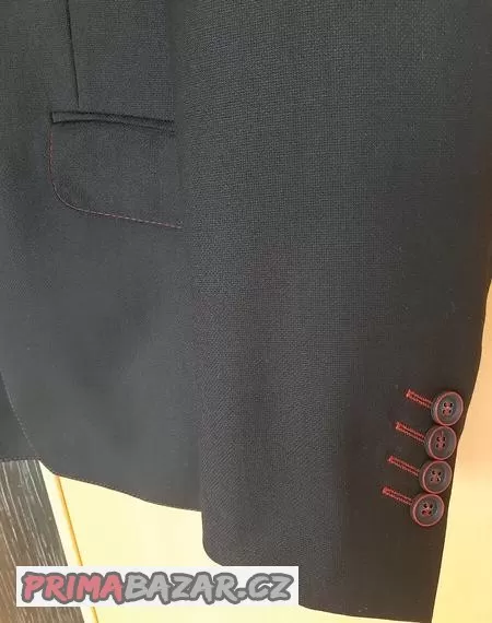 Černé s decentním červeným štepováním. Nové, oblečeno pouze několikrát, syn z něho hned vyrostl. Ve výborném stavu.