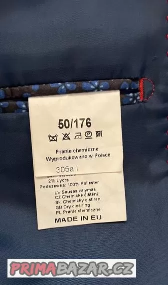 Prodám pánský oblek velikosti 50/176 - kalhoty i sako.