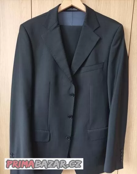 Prodám pánský oblek - jako nový. Nošený cca 6x. Sako velikost 50 a kalhoty velikost 42. Další značení USA je Sako 42 a kalhoty 32. Velikost postavy výška 185cm hmotnost cca 83kg. Možno vyzkoušet v Praze Letňanech, nebo v Mělníku či Tanvaldu. Délka kalhot je 86 od rozkroku a 113cm celková délka, šířka 43cm tzn. obvod 86 cm