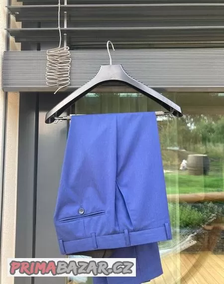 Prodám zánovní (jednou nošený) modrý pánský oblek velikosti 48.