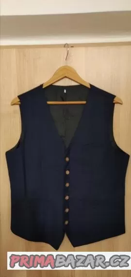 Prodám pánský oblek modrý vel.L ,ale velikostí spíše M. /sako,kalhoty,vesta/