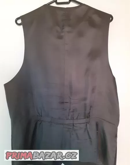 Míry: délka saka 87 cm, délka rukávu 70 cm, obvod 2x52cm, obvod hrudníku 2x55cm, délka vesty 67 cm, obvod pasu vesty 2x48, délka kalhot 115 cm, obvod pasu kalhot 2x38cm, dolní šířka nohavic 2x23cm, délka kalhot od rozkroku 85cm.