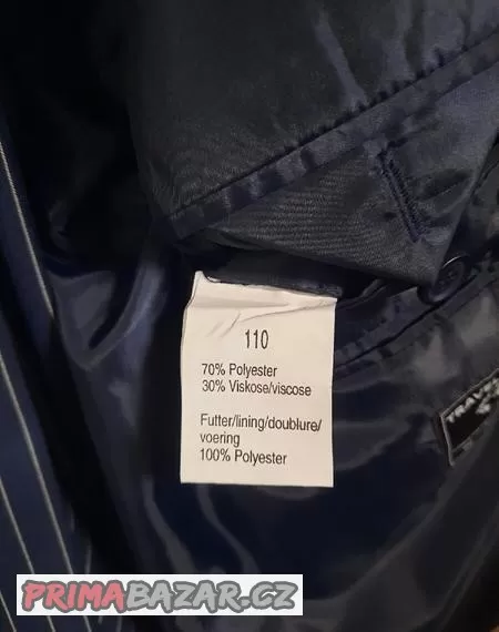 Nabízím pánský oblek TRAVELMASTER v tmavě modré barvě s proužkem. Velikost 110. Velmi dobrý stav. Cena 999,- Kč.