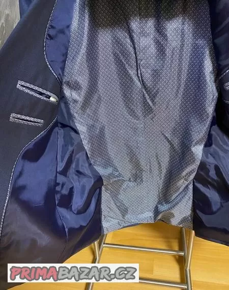 Prodám panský tmavě modrý oblek slim na výšku cca 196cm. Oblek je jako nový, bez vad. Prodej z důvodu malé velikosti.