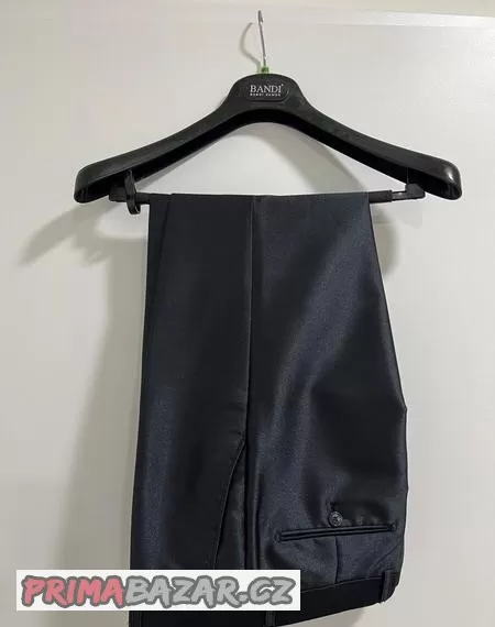 Prodám pánský oblek značky Bandi Vamos. Luxusní černá barva s mírným pololeskem. Střih SLIM FIT. Velikosti 48/170 (obvyklá velikost S/M). Jednou nošený. Bez poškození. Pořizovací cena 14990,-