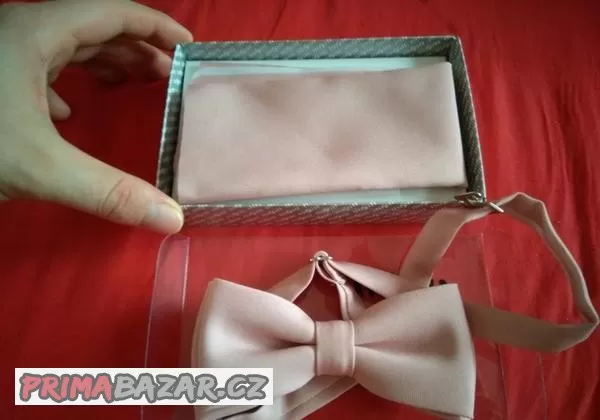 Prodám slavnostního motýlka starorůžové barvy včetně kapesníčku. Zabaleno v originálním balení. Původní cena 350 Kč. Nevhodný dárek.