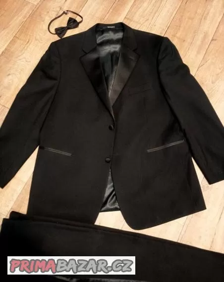 PRODÁM SMOKING-DOVOZ ANGLIE,PAS cca 106-107, DÉLKA KALHOT OD PASU-103.OD ROZKROKU-74 cm,SAKO-ZÁDA OD LÍMCE-81 cm,PRŮRAMKY cca 120 cm, RUKÁV OD LÍMCE cca-82, RUKÁV OD PODPAŽÍ cca 40cm,ŠÍŘKA RAMEN 51cm . NÁHRADNÍ KNOFLÍKY + MOTÝLEK .JEN OSOBNÍ PŘEDÁNÍ
