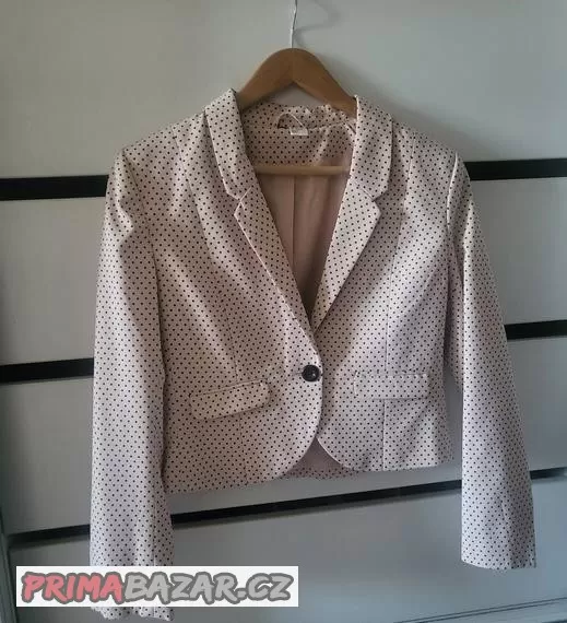 Prodám moc pěkné, pudrově růžové sako s drobnými puntíky. Sako se zapíná na jeden knoflík, s podšívkou. Jako nové. Nákup možný přes Zásilkovnu nebo osobní odběr v Praze.