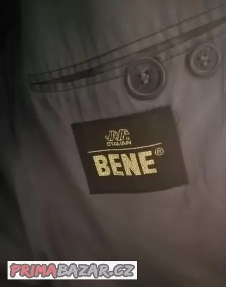 Pánské šedomodré sako, kalhoty a vesta - Otavan - Třeboň. Sako: délka 86 cm, šířka 61x2 cm, rukáv 66 cm, rozmezí ramen 53 cm od švu ke švu. Kalhoty délka 107 cm, v pase 92 cm. Materiál 93 % bavlna, 7% polyester. Nošeno málo - příležitostně.