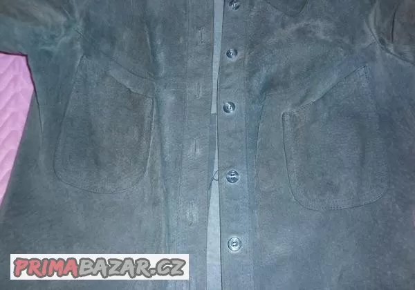 Dámské sako z pravé vepřovice,minimum nošené se dvěmi kapsami a ozdobnými švy na zadním díle.Míry:rukávy 58cm,délka 66cm,šířka 46cm.Vel.42