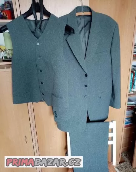 Šedý oblek perfektní stav levně