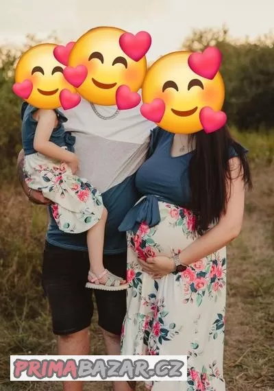 Šaty pro těhotnou maminku velikost XL, šaty pro holčičku velikost 3-4 roky, pánská velikost pro tatínka XXL.