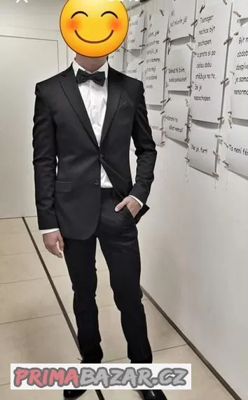 Ve výborném stavu, košile nežehlivá úprava. Barva obleku černá, košile bílá. Jen jako celek. Sako délka 78cm, hrudník 46cm (1/2), rukáv 63cm. Kalhoty délka 108cm, pas 38cm (1/2). Košile vel.S. Pouze osobní předání, nutno vyzkoušet. Velmi hezky sedí na štíhlou postavu.