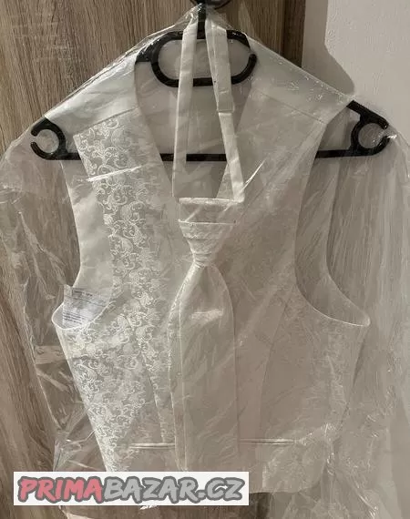 Predám svadobnú vestu smotanovej farby (ladila k mojím šatám farby Ivory), veľkosť 48. Regata k tomu, kapesníček sme žiaľ stratili. Oboje vyčistené v čistiarni.