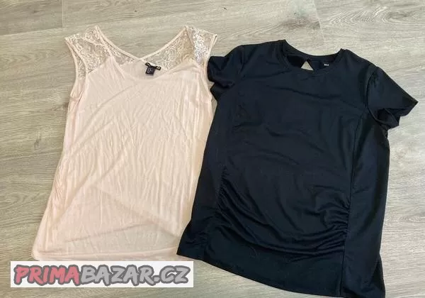 Prodám těhotenská trika jako celek, velikost je větší M/menší L. Jsou pružná, dobře sedí.