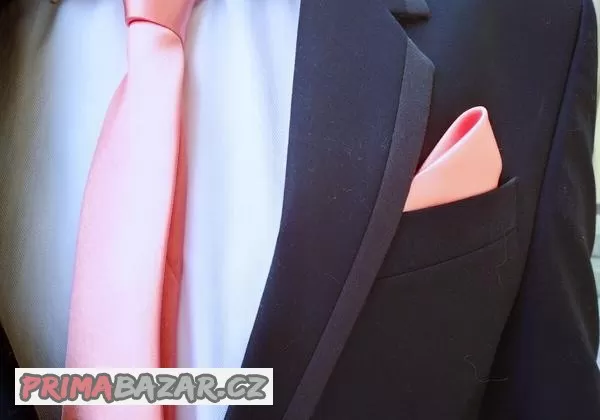 Přidám saténovou kravatu s kapesníčkem , cena i s oblekem jako set.