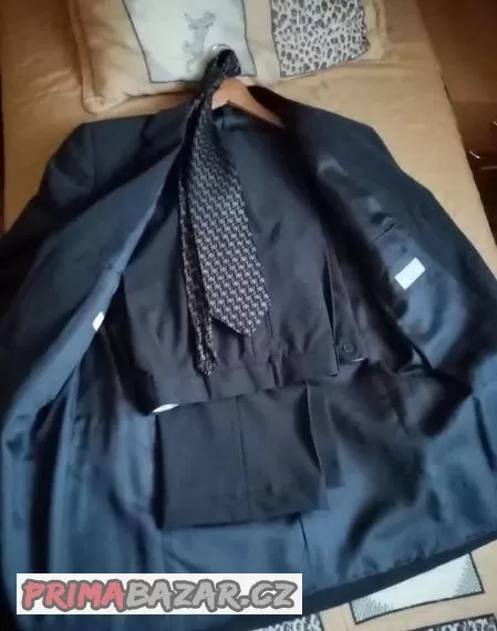 Značkový tmavě šedý oblek levně