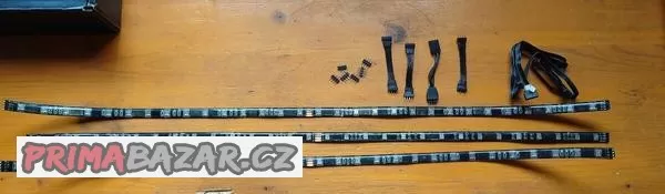Prodám tři magnetické LED pásky od Cablemod včetně potřebné kabeláže pro propojení a připojení na desku. Celkově v dobrém stavu, jedna páska v trochu horším fyzickém stavu (viz foto), ale na funkci to nemá vliv.