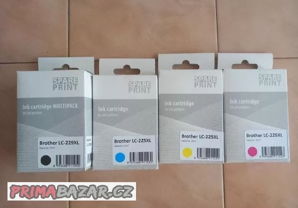 Prodám barvy do tiskárny Brother LC - 225 XL. Barva černá, modrá, žlutá, magenta. Cena za všechny 4 náplně. Přidám i tiskárnu. Černě tiskne super, barvy zlobí
