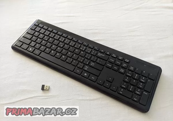 Prodám párkrát použitou bezdrátovou klávesnici. Rádiový přenos 2,4 GHz (s přijímačem do USB). Kvalitní zpracování, zánovní stav (ještě s ochrannou folií na indikačních LED).