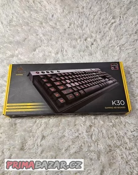 Prodám klávesnici Corsair Gaming K30, klávesnice má červené podsvícení kláves, programovatelné klávesy s možností uložení profilů, multimediální klávesy, barevně odlišené herní klávesy, USB 2.0 rozhraní, EU rozložení kláves. Možnost poslání zásilkovnou nebo osobní předání v Praze