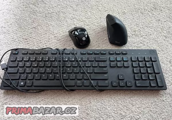 Ergonomická bezdrátová myš Trust, bezdrátová myš HP a drátová klávesnice DELL. Vše funkční !