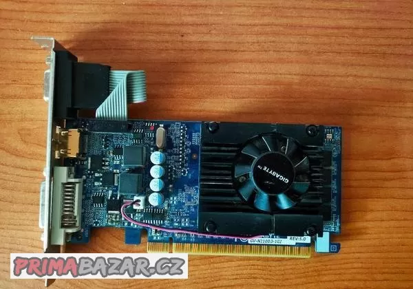 Prodám funkční grafickou kartu Gigabyte NVIDIA GV-N210D3 . Nemá žádné přídavné napájení. Konektory HDMI, DVI, VGA.