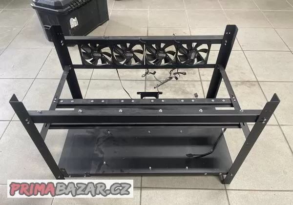 2 roky stará konstrukce od výrobce Akyga na 6 GPU, včetně 4 ventilátorů Akyga. včetně držáků zdrojů a disku ( nejsou na fotce)