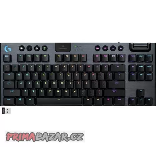 TKL bezdrátová klávesnice, dynamické podsvícení, bez numerického bloku, nízkoprofilové klávesy, spínač Logitech GL Linear, makro programovatelné klávesy, kovové tělo, USB