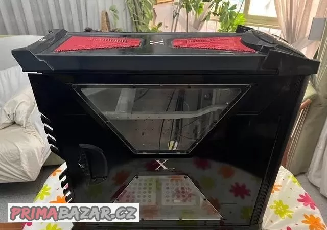 Stylová a luxusní počítačová skříň formátu super tower od firmy Thermaltake v černo-červeném precizním celohlinikovém provedení s hliníkovou přední odklápěcí stěnou ozdobenou známým X designem.