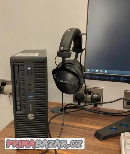 Značkový počítač Hewlett-Packard ProDesk 400 G2.5 v malém provedení SFF, možné postavit nebo položit pod monitor. Zvládá přehrávat videa z YouTube v kvalitě 2560 × 1440.