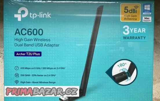 Prodám Wi-Fi USB adaptér (externí anténa) tp-link AC600 - nerozbalené/nepoužité, koupené 11/2020.