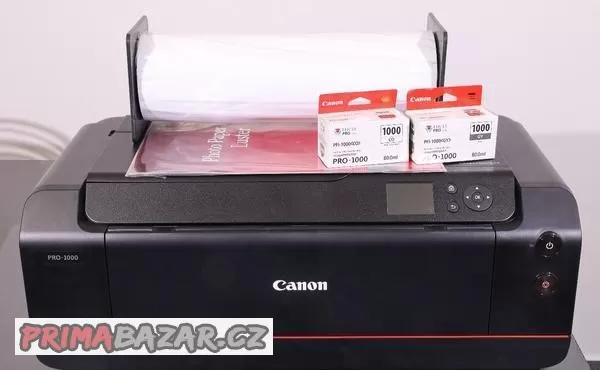 Prodám profesionální A2 tiskárnu, Canon imagePROGRAF PRO-1000. Tiskárna je v TOP stavu, vytiskl jsem pouze několik fotografií. Pro tiskárnu nemám využití. Tiskárna používá 12 pigmentových inkoustů LUCIA PRO a dosahuje špičkové úrovně tisku. V tiskárně je originální inkoust, který byl dodávaný s tiskárnou. Tiskárna byla zakoupena v ČR, 11.7.2023 a je tedy v záruce. Součástí tiskárny je faktura. Pořizovací cena byla 27 524 Kč. K tiskárně mám 2 nové originální inkousty PFI-1000(CO) a PFI-1000(GY) za 2x 1 259 Kč. Součástí tiskárny je 5 listů fotopapíru A3 Canon Photo Paper Pro Luster. K tiskárně mám též roli fotopapíru FOMEI Pro Perl 265 43,2 cm x 30,5 m. Z fotopapíru jsem použil asi 4 m. Fotopapír nechám k tiskárně zdarma.
