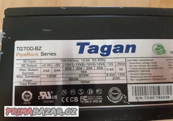 Prodam funkční zdroj Tagan 700W, 1x6pin, 1x6+2pin, neposilam, osobní odběr praha.