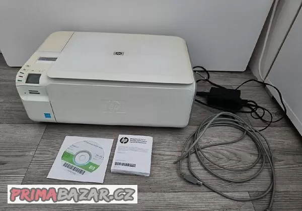 Používaná, je zažloutlá od sluníčka, byla vedle stolu umístěného pod oknem. Funkční. Značka HP. HP Photosmart C4480. Lze na ni tisknout i fotky. Propojení s PC pomocí USB kabelu, kopíruje bez nutnosti instalace ovladače, pokud si nainstalujete ovladač lze tisknout a přímo v rozhraní na PC začít skenovat. Neobsahuje náplně, musíte si je koupit. Náplně lze ještě sehnat.