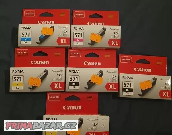 Prodám tonery do tiskárny Canon. 2x černá 571 XL, 2x žlutá XL (jedna z toho rozbalená cena 100,-), červená 571 XL, modrá 571 XL. Cena uvedena za kus. Možnost osobního předání Brno nebo poslání poštou.