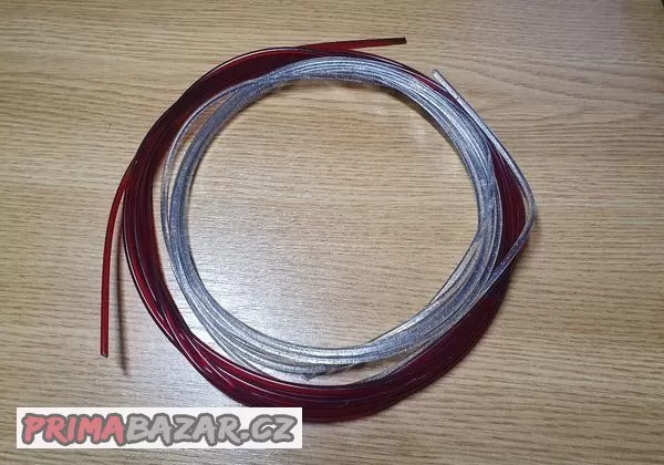 Nabízím malé vzorky 3D filamentu 3 mm. Transparentní červená a průhledná se stříbrným třpytem.