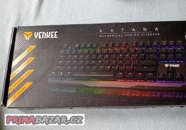 Jedná se o klávesnici (Yenkee Katana).Mechanická klávesnice k počítači s modrými switci.Podsvícení barevné.100 Procentní klávesnice. Parametry viz foto.Skoro nová, málo používána. Krabice v horším stavu.předání v Orlovicích nebo ve Vyškově.